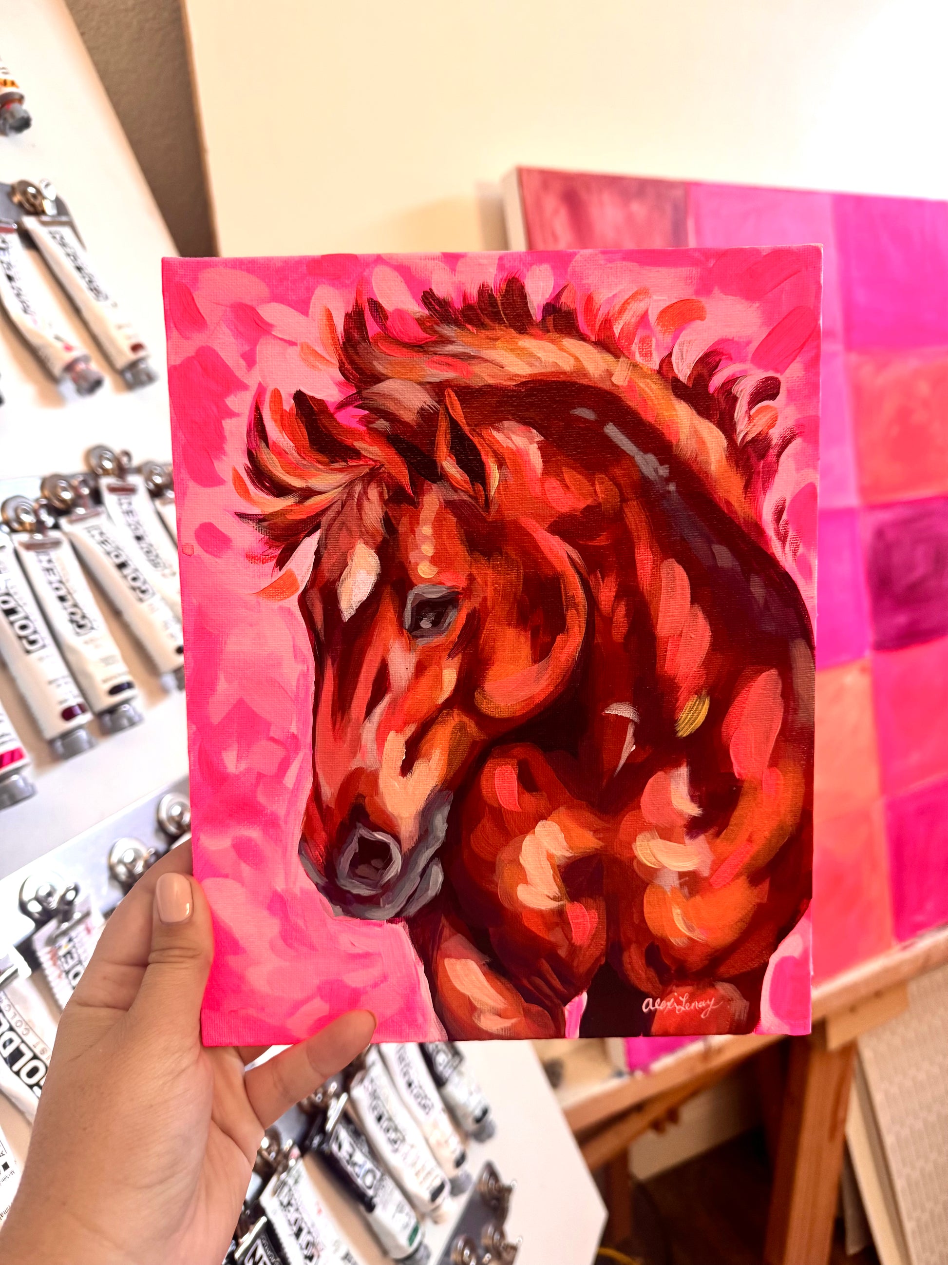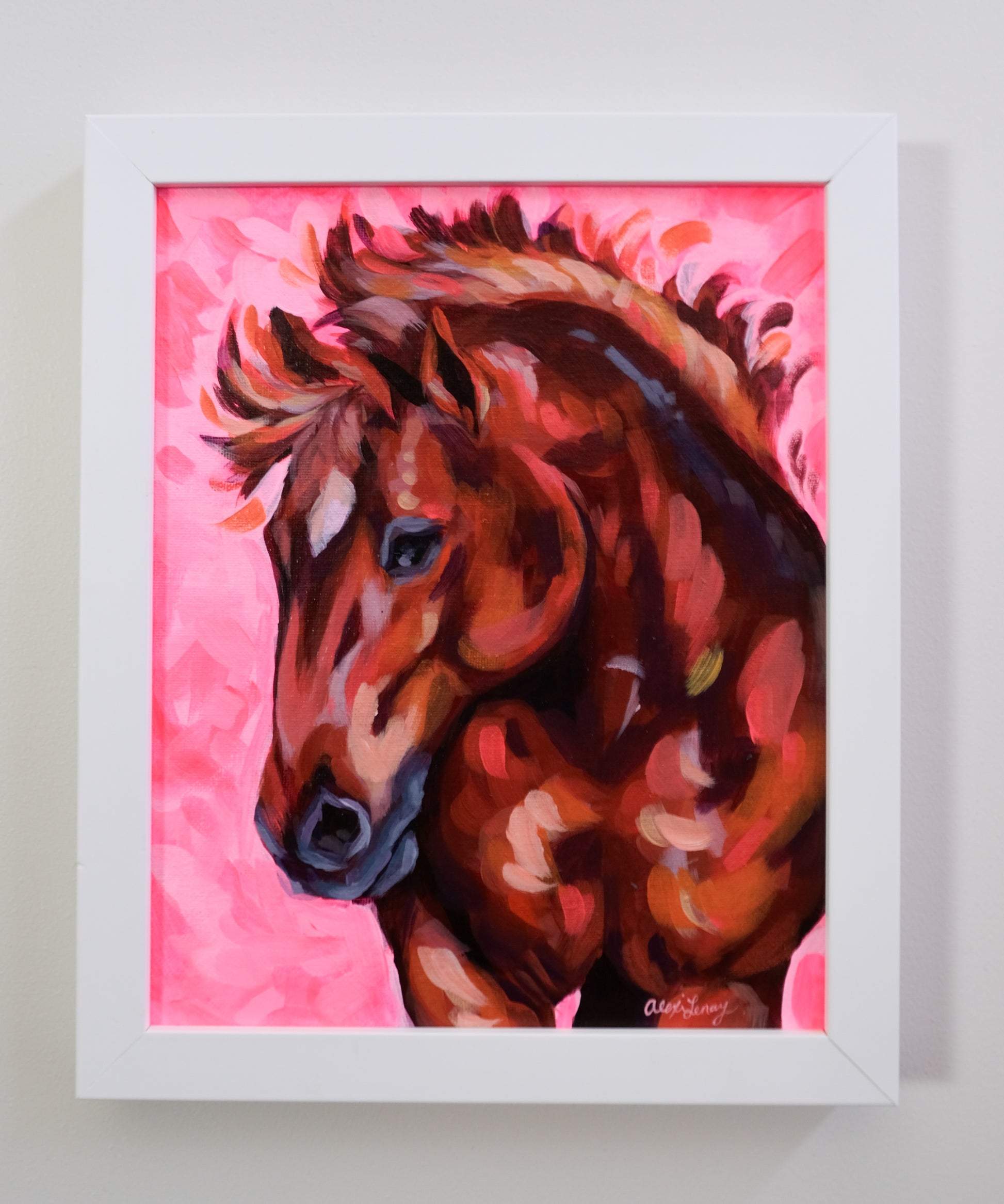 8" x 10" acrylic painting on canvas panel, framed with a white frame.